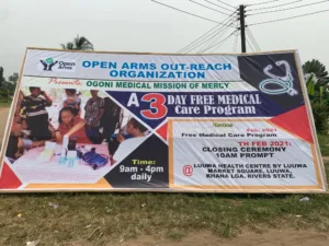 In our continued efforts to bring healthcare to underserved communities, Open Arms Outreach Organization Inc. carried out a major humanitarian project tagged “Free Medical Mission of Mercy” in Ogoni Land, hosted by Luuwa Community.